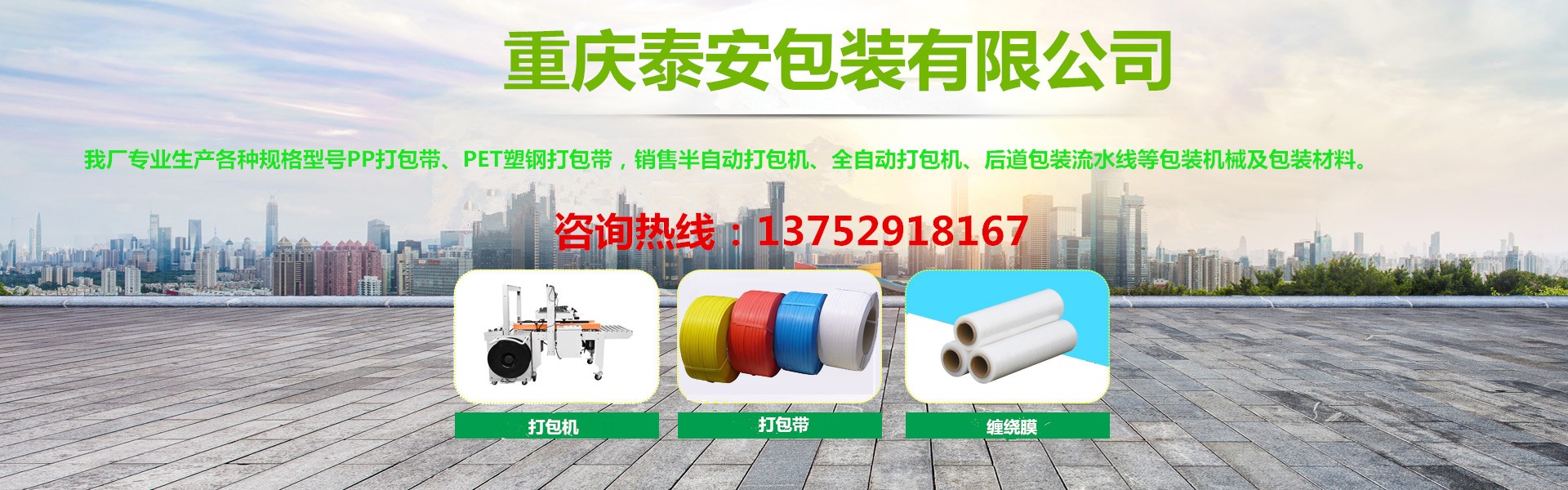 重慶泰安包裝有限公司(電話:13752918167)是專業(yè)生產(chǎn)各種打包帶、塑鋼帶、纏繞膜、膠帶,銷售打包機(jī)、纏繞機(jī)、封箱機(jī)、無(wú)人化流水線等各種包裝機(jī)械、包裝制品、包裝材料一體化的優(yōu)秀包裝企業(yè),始終堅(jiān)持“穩(wěn)步擴(kuò)張、精益管理”的方針,堅(jiān)持“換位思考,了解客戶需求,主動(dòng)服務(wù),超越客戶期待”的服務(wù)理念,以熱忱的服務(wù)、優(yōu)良的品質(zhì)、靈活的機(jī)制、創(chuàng)新的技術(shù),向各新老客戶提供最優(yōu)質(zhì)、優(yōu)價(jià)的產(chǎn)品和服務(wù),具有對(duì)系列產(chǎn)品自主研發(fā)創(chuàng)新能力,能夠獨(dú)立根據(jù)用戶要求制版打樣。近十年來(lái)受到廣大客戶的信任,產(chǎn)品銷售遍及全國(guó)各大城市,與客戶形成自由平等、互利互惠的戰(zhàn)略合作關(guān)系,平均年銷售量2000多噸。